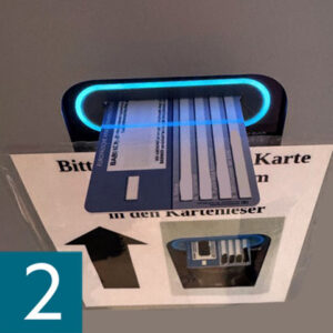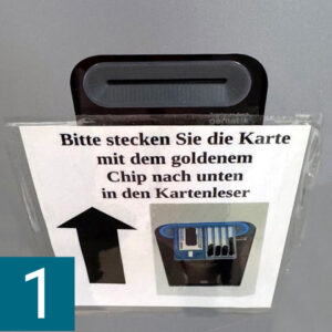 1. Stecken Sie Ihre Karte so in den Schlitz bis zum Ende. Der Chip muss beim einstecken nach unten zeigen.