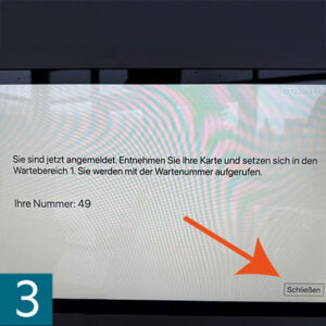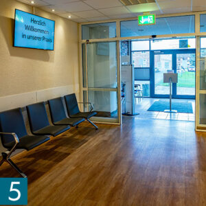 5. Setzen Sie sich bitte in den WARTEBEREICH 1. Sie werden dann über den Monitor und über Lautsprecher aufgerufen.