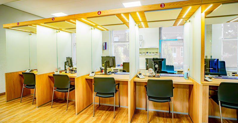Als Privatpatient melden Sie sich bitte an einer der Kabinen.